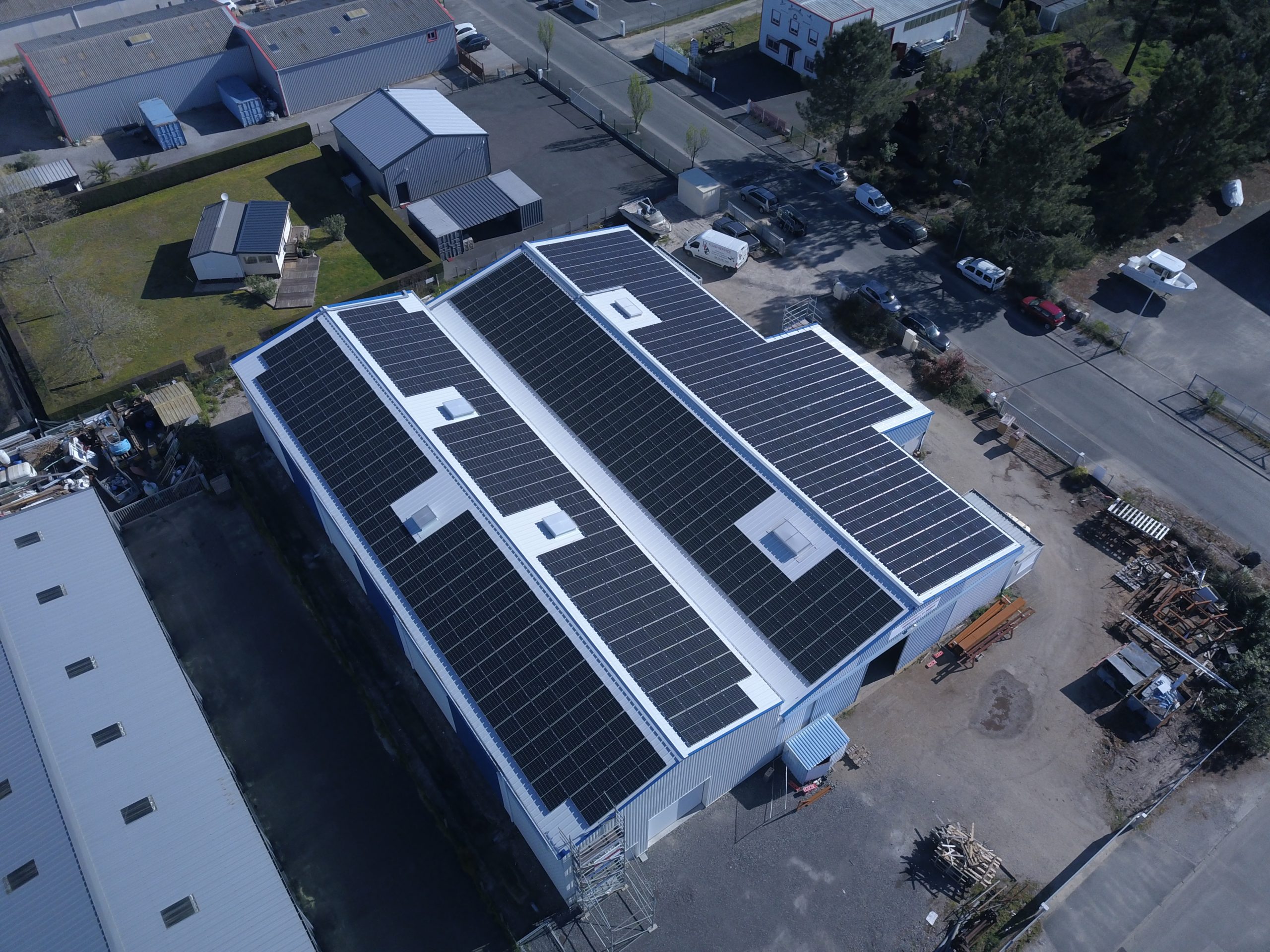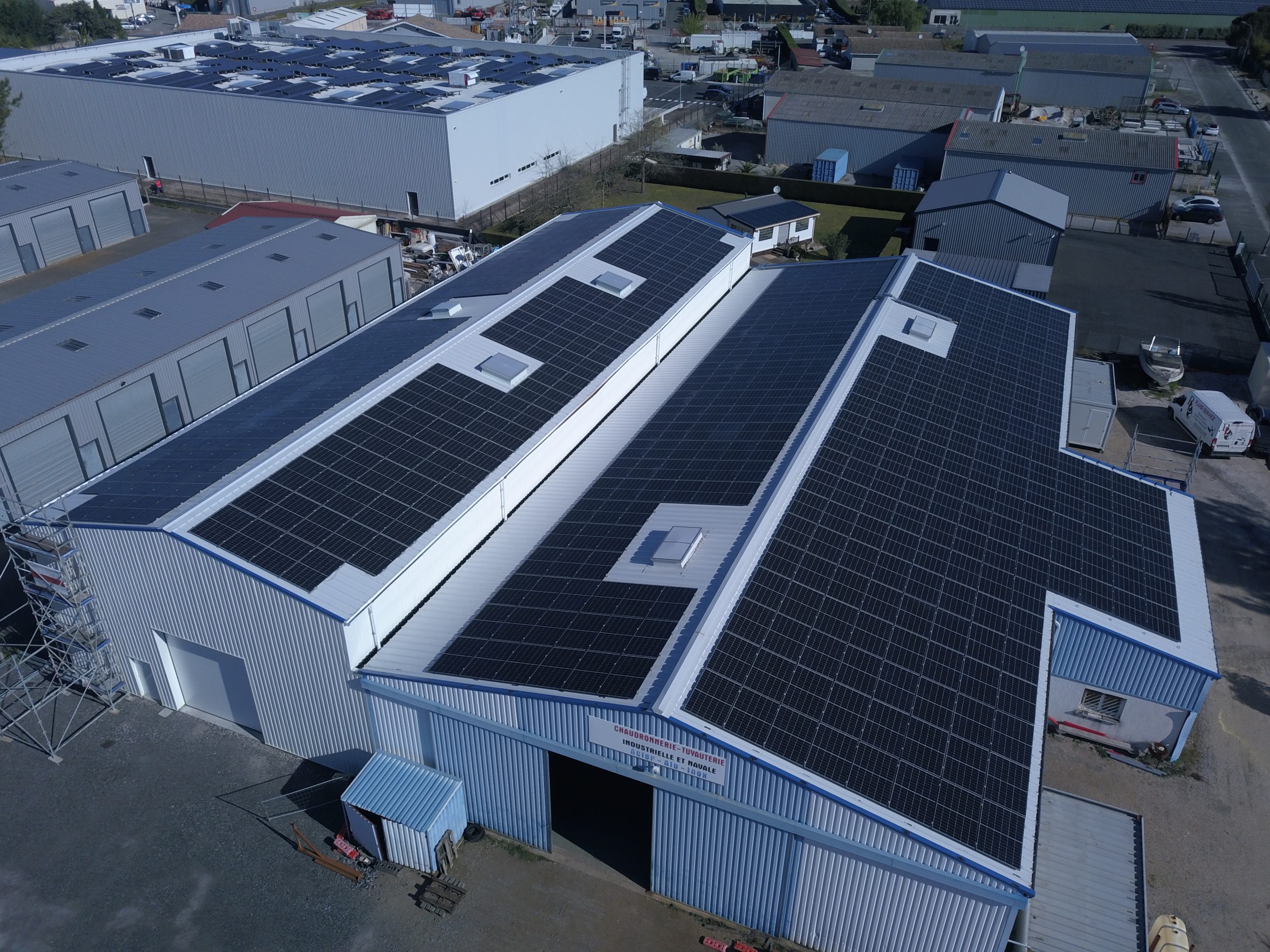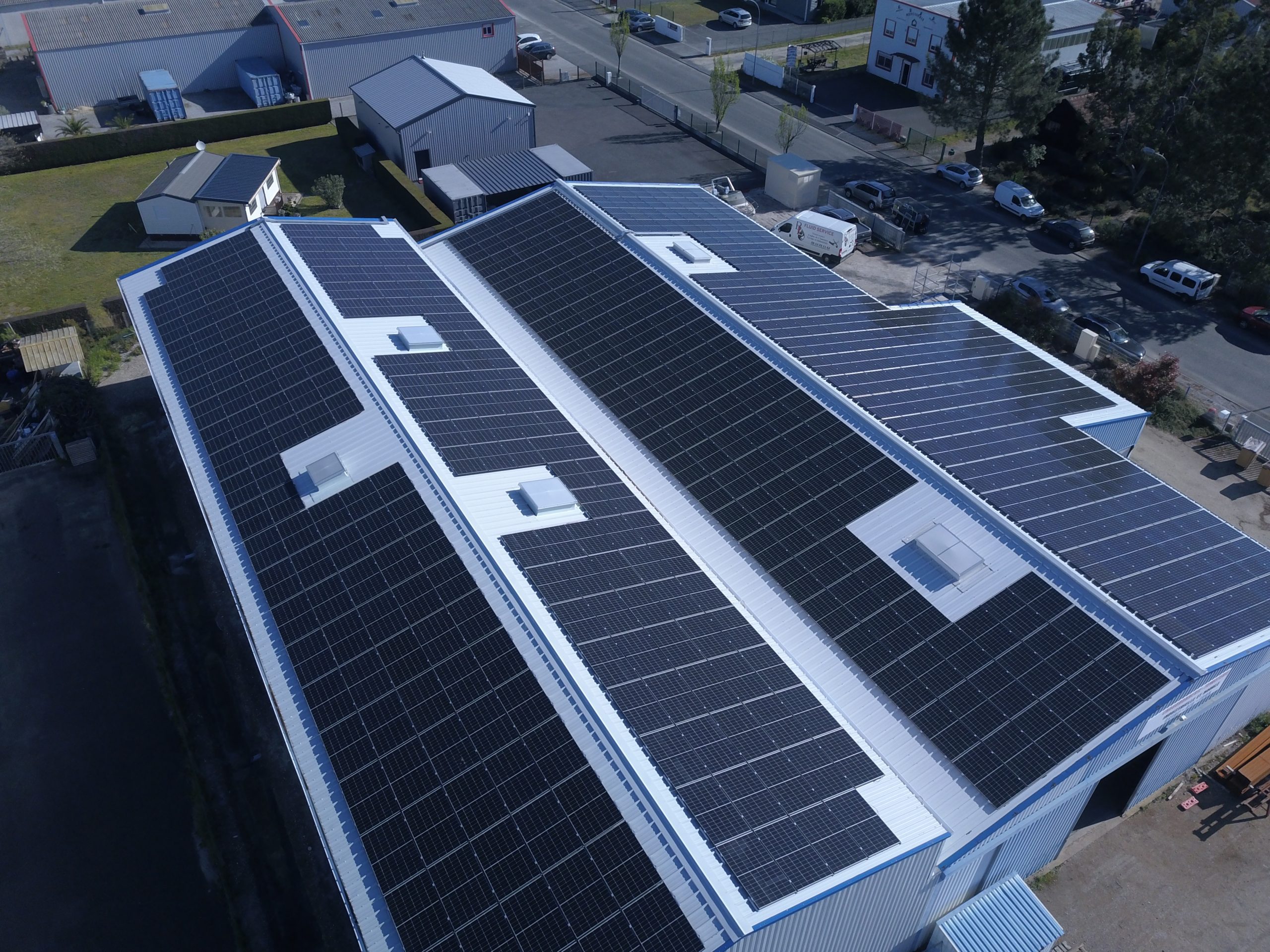 Notre client souhaitait utiliser l'espace inoccupé du toit de son bâtiment pour installer des panneaux solaires et revendre l'intégralité de l'électricité produite. Nos équipes ont ainsi installé 533 panneaux, pour une puissance de 240kWc.